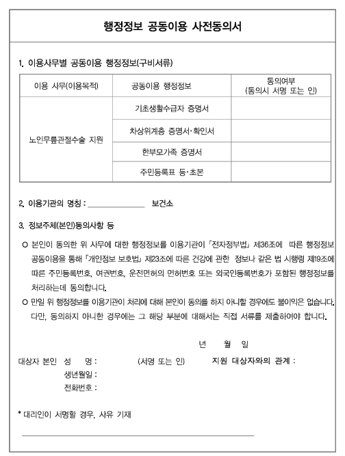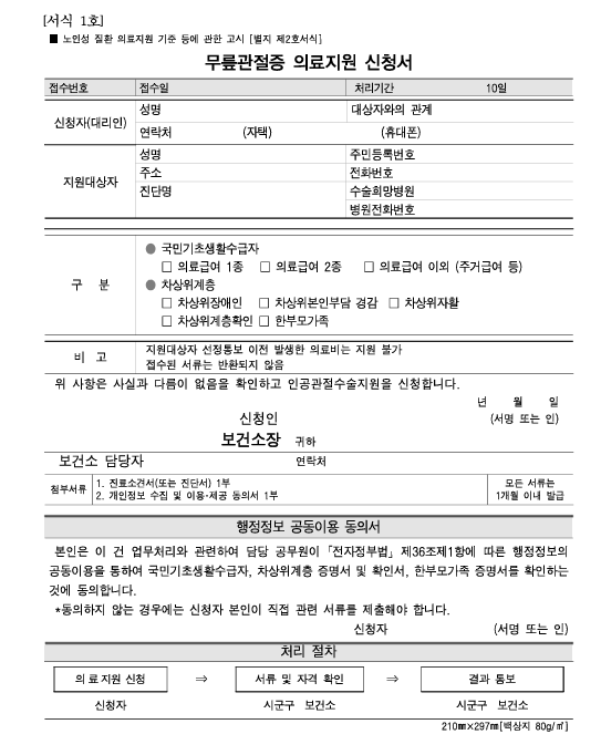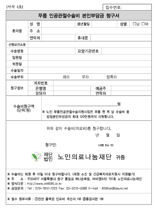 또한, 무릎 인공관절 수술이 필요하다는 의사의 진단서를 제출해야 합니다.