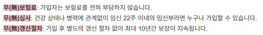 임신 중 발생할 수 있는 다양한 위험으로부터 엄마와 아기를 보호하고, 출산 이후에도 지속적인 보장을 제공하여 많은 예비 부모들에게 큰 도움이 되고 있습니다.