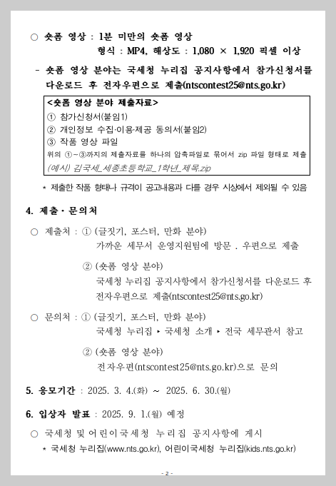 2025년 국세청 청소년 세금작품 공모전