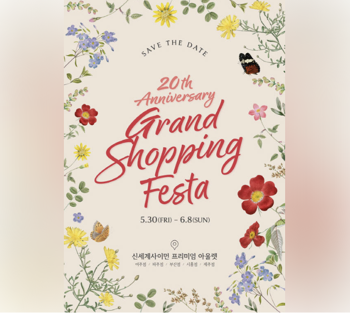신세계아울렛 창립20주년 그랜드쇼핑페스타 25.5.30(금)-6.8(일)