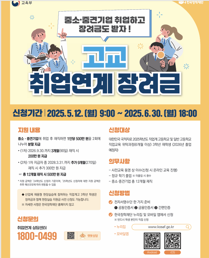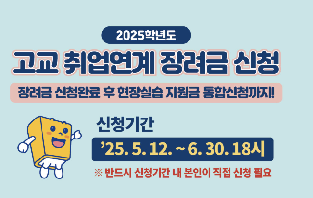 2025학년도 고교 취업연계 장려금 신청이 시작되었습니다.