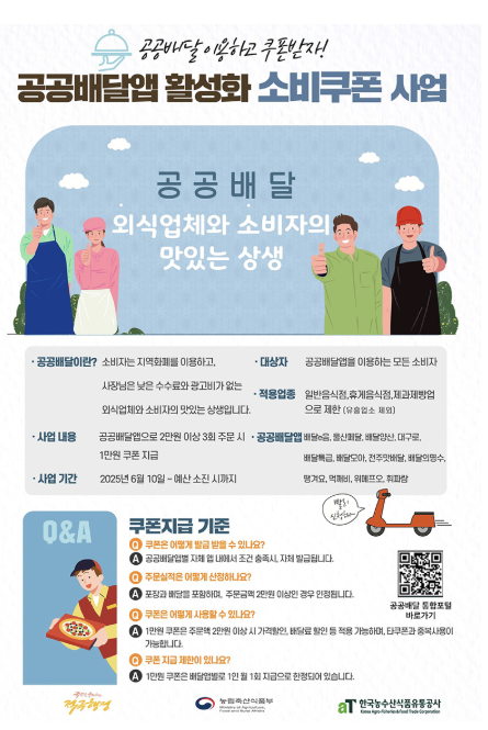 지역 자영업자 응원: 수수료 부담이 적은 공공배달앱을 통해 주문하면 지역 상권이 살아납니다.