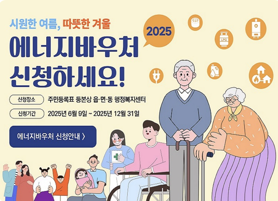 2025년 에너지바우처 사업 접수가 6월 9일(월)부터 시작되어 12월 31일(화)까지 진행됩니다.