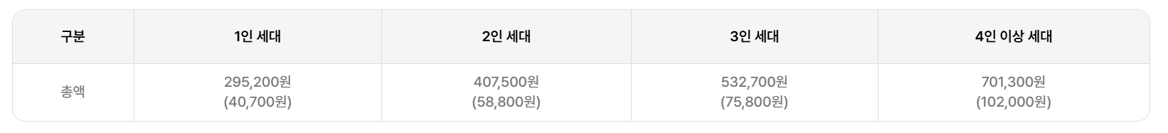 4인 이상 세대 최대 701,300원