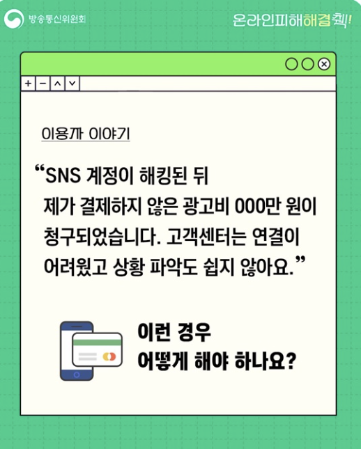 광고비 결제 외에도, 온라인에서 발생하는 다양한 금전적 피해는 별도 기관에 신고하고 구제받을 수 있습니다.